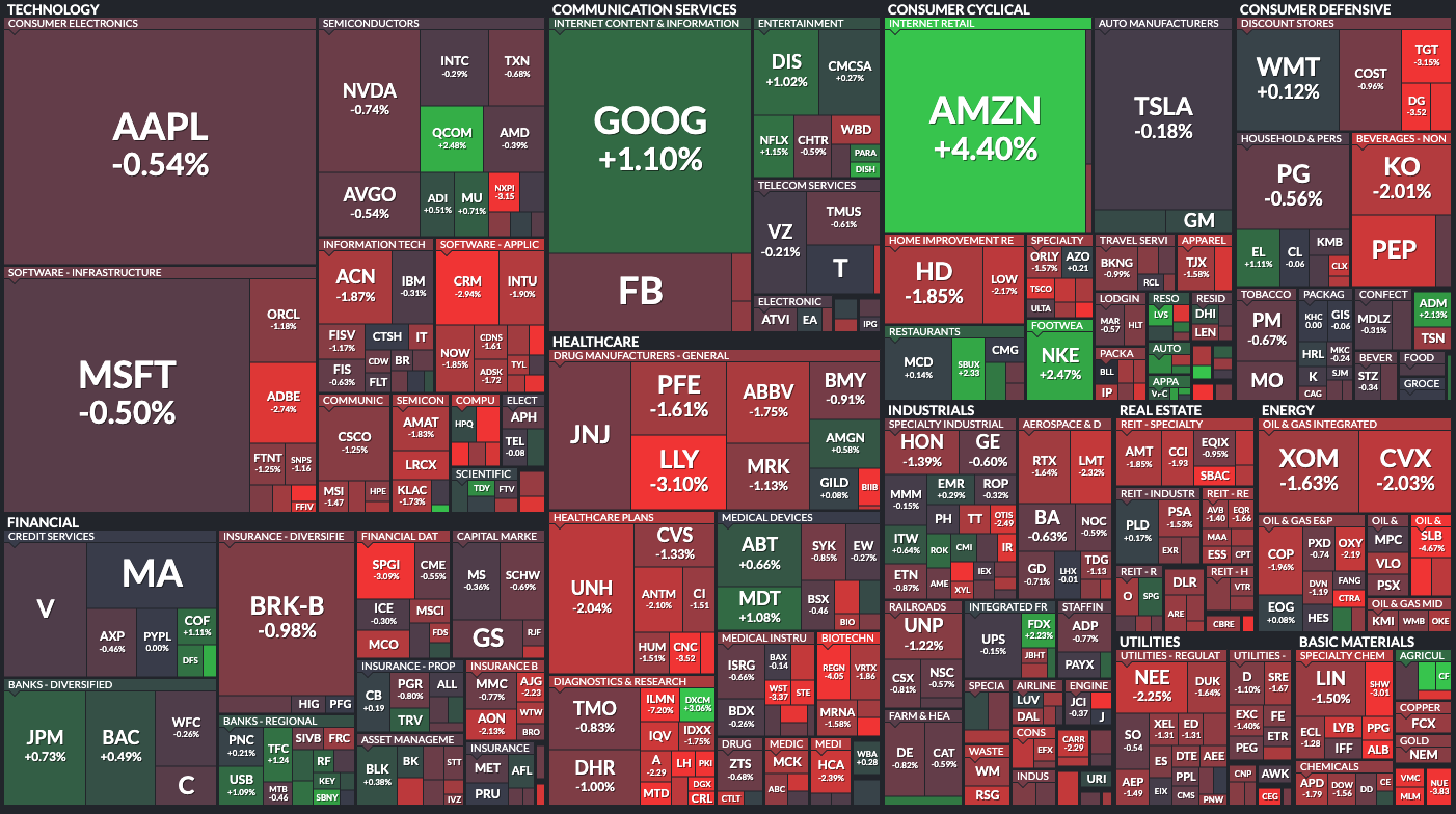 마켓포인트에 따르면 이날 미국 뉴욕증권거래소에서 블루칩을 모아놓은 다우존스 30 산업평균지수는 전거래일 대비 0.67% 떨어졌다. 대형주 중심의 스탠더드앤드푸어스(S&P) 500 지수는 0.62% 내렸다. 기술주 중심의 나스닥 지수는 0.41% 하락했다.