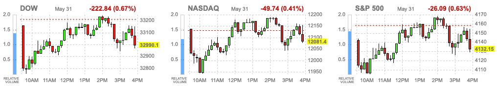 미국 뉴욕 증시의 주요 3대 지수가 5월 마지막 거래일인 31일(현지시간) 또 하락 마감했다.