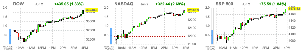나스닥은 오랜만에 큰폭으로 상승하는 모습을 보여주고 있습니다. OPEC+ 에서 원유 생산량 증산 합의로 원유 가격하락 기대감이 반영된 것으로 보입니다. 현재는 기술적 반등이라고 보기엔 매수세가 강해 보입니다. 물론 여기에서 다시 이슈로 하락할수 있겠지만 지금 현재는 특별한 하락 이슈가 보이지 않고는 있습니다.