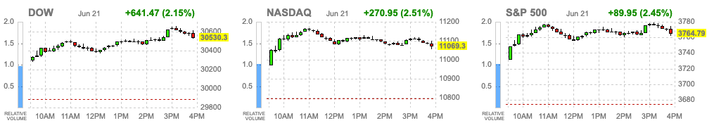 지난주 미 연방준비제도(Fed·연준)의 '자이언트 스텝'(0.75%포인트 금리인상) 여파 속에 신종 코로나바이러스 감염증(코로나19) 사태 초기인 2020년 3월 이후 최악의 한 주를 보냈던 뉴욕증시는 미 노예해방일(준틴스) 휴장 후 오랜만에 개장한 이날 출발부터 힘을 냈다.
