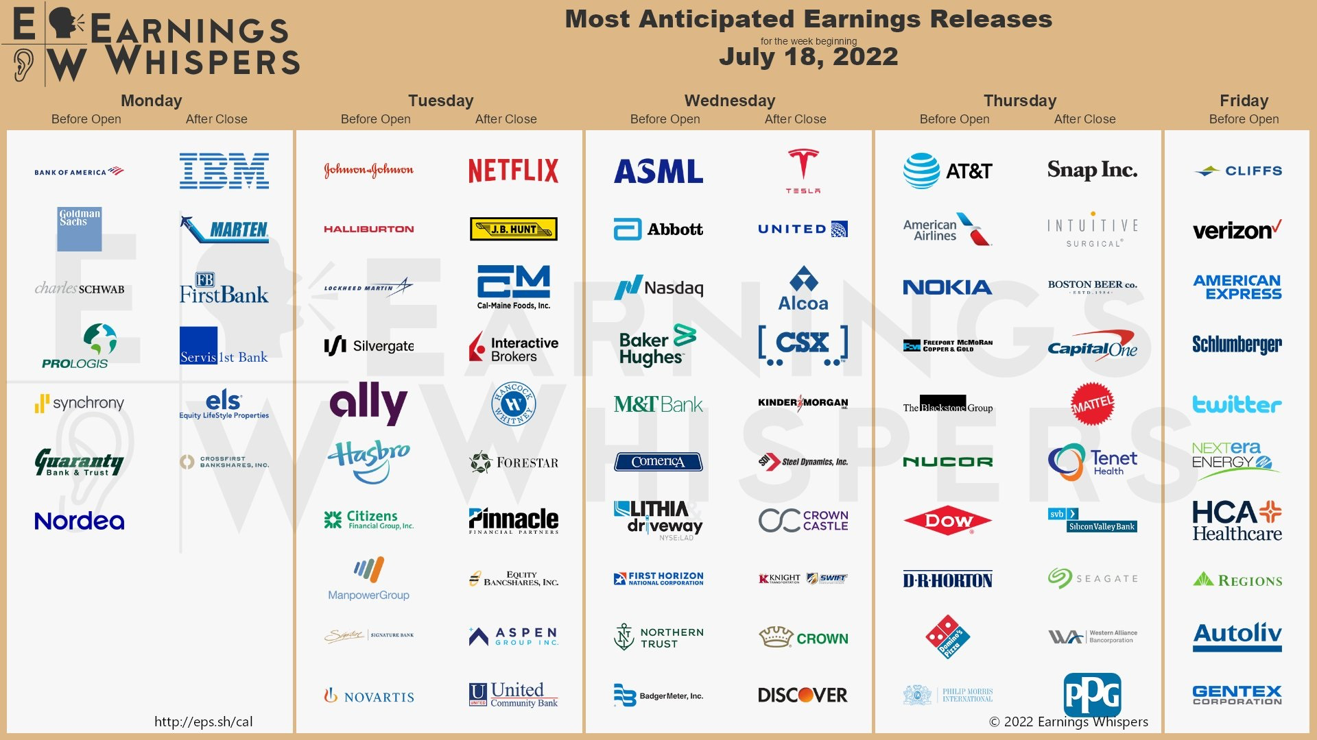 이번주 2분기 어닝 발표 기업들 입니다. 테슬라 많이 떨어지길 기대합니다.