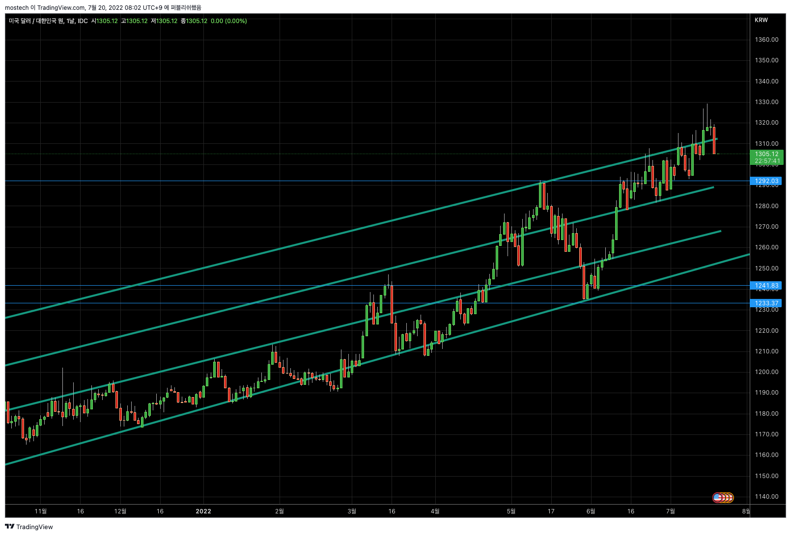 환율은 나스닥이 강하게 오르니 역시 내립니다. 오늘도 나스닥이 강하게 오르길 바랍니다.