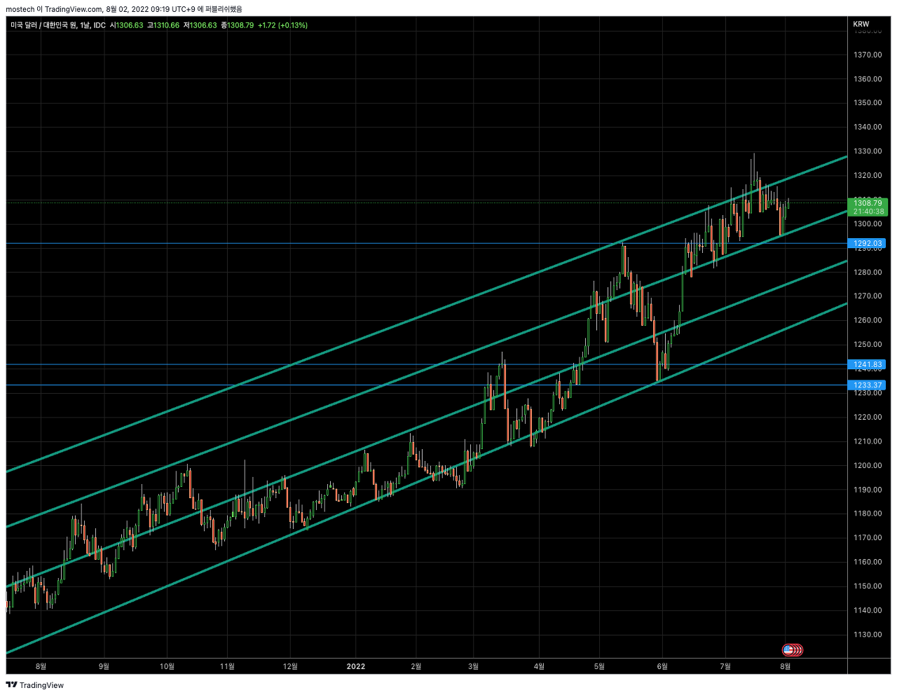 환율은 역시 더 올라가는 방향이지 싶네요. 이유는 나스닥이 내리면 달러는 오르니까요.