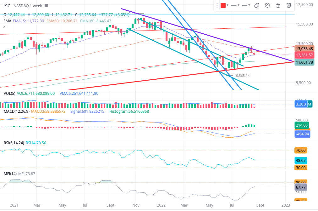 나스닥 차트에 붉은 추세선 안에서 움직이지 않을까 생각 됩니다.