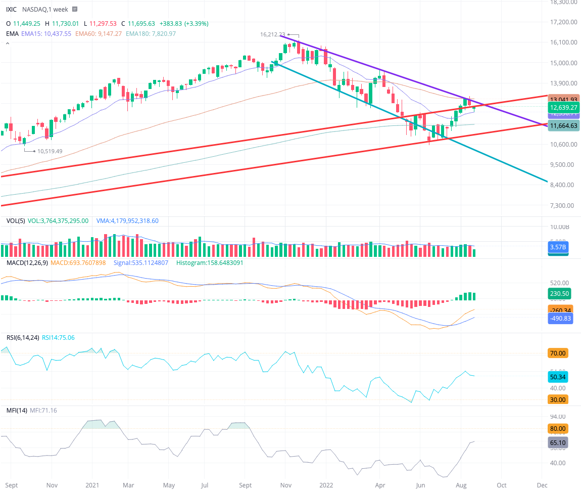 나스닥은 다시 상승했습니다. 잭슨홀 미팅에서 자이언트스탭을 지속할꺼라 시장 변화가 없다는 생각으로 저가매수가 들어온것 같습니다.