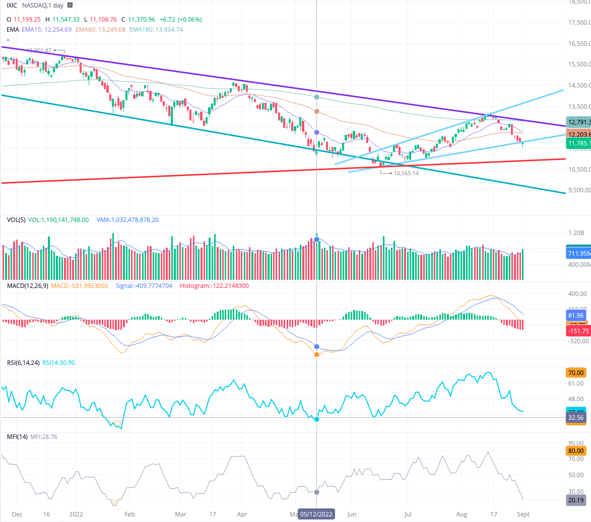 나스닥 차트는 결국 RSI 37 까지 보러 왔습니다. 선물 시장과 장 시작때 하락 하고 있었지만 상승으로