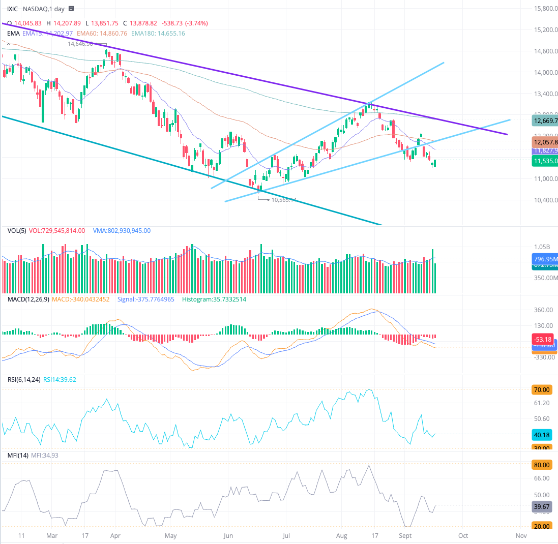 나스닥은 10년물 금리가 3.5%까지 상승했음에도 불구하고 소폭 상승했습니다. 어제에 이어서 저가매수세가 붙어서 상승마감으로 되었습니다. FOMC가 내일새벽부터 23일까지 인데 예상치는 기본 0.75% 인상이고, 심하면 1%까지도 보고 있습니다.