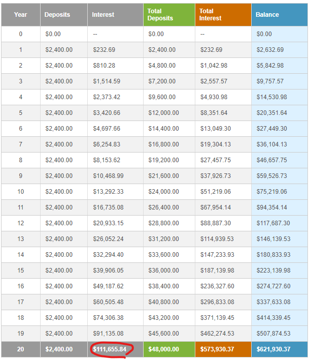 - 미성년 자녀에게 연복리 20%에 매월 20만원씩 미국주식을 매수해준다(1년에 240만원 10년에 2000만원)