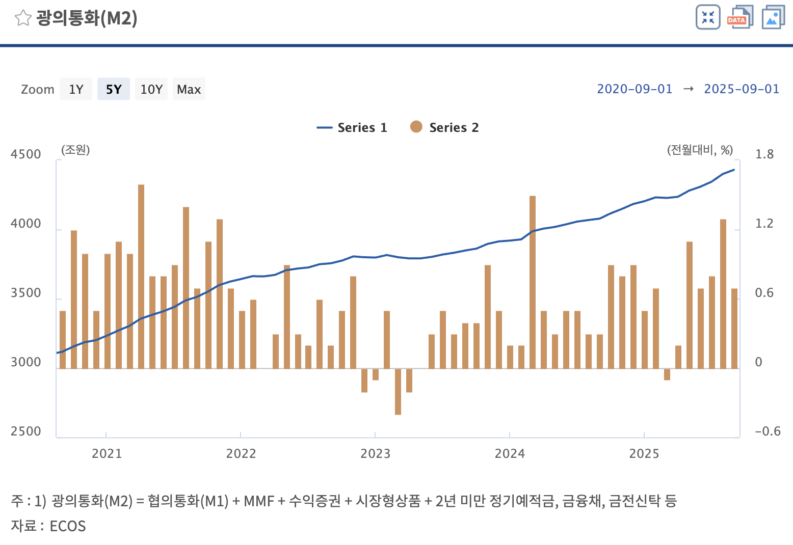 젤 중요한 대한 민국의 M2 통화량 증가가 다른 나라에 비해 가파르게 상승한다는게 제일 큰 요인이다.