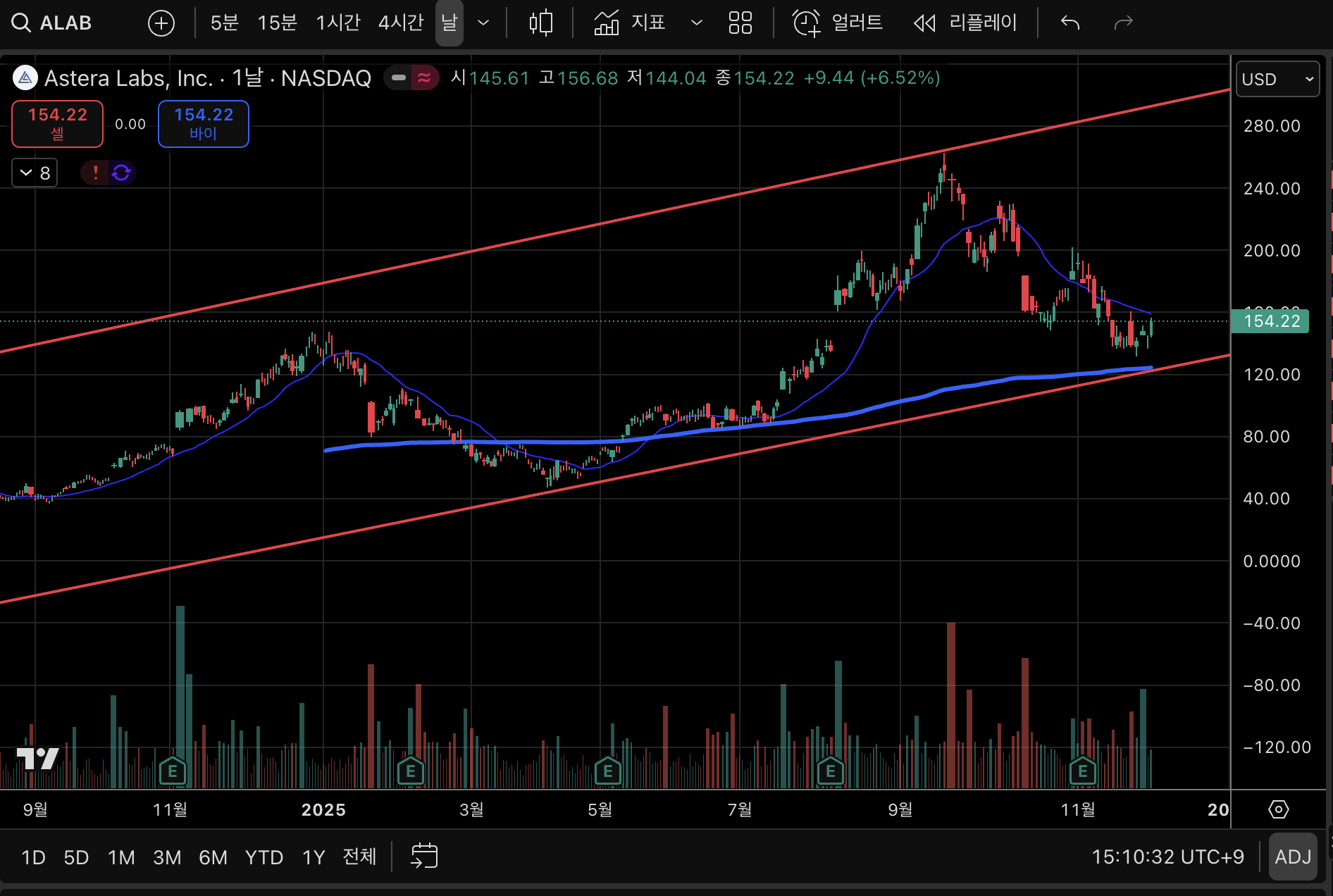 아스테라 랩스는 분명 매력적인 기업이지만, AI 성장 기대감이 이미 주가에 **높은 밸류에이션(고평가)**으로 반영되어 있습니다. 이처럼 고성장/고위험 성향의 종목들은 시장 변동성에 취약할 수밖에 없습니다.