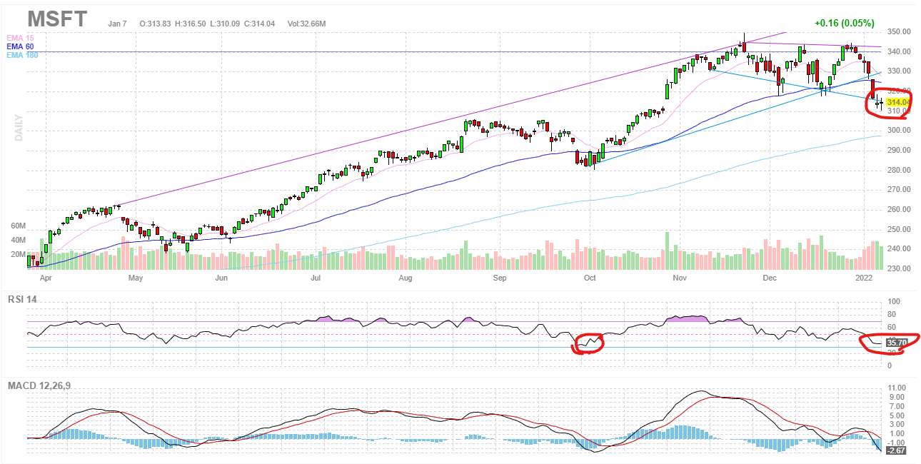 현재 직전 저점 보다 내려와있는 상태입니다. Finviz 슈퍼컴퓨터가 그림을 그려놨는데 하단 파란선에 물려 있네요. 또한 RSI가 작년 10월 저점에 내려와 있습니다. EMA 60일선 밑 매수 추천!