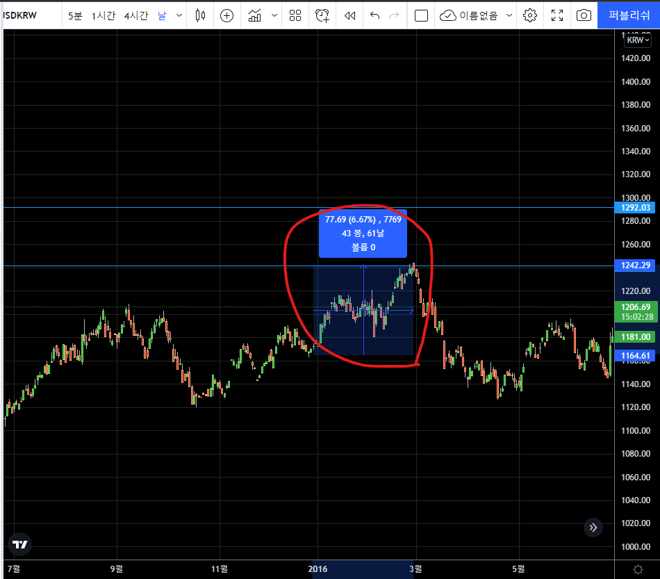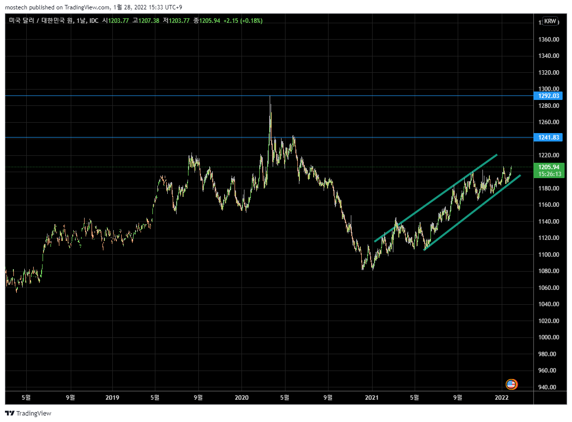 따라서 이번에도 1240원까지... 아니면 더 높은수준까지 올라갈수도 있을것이다.