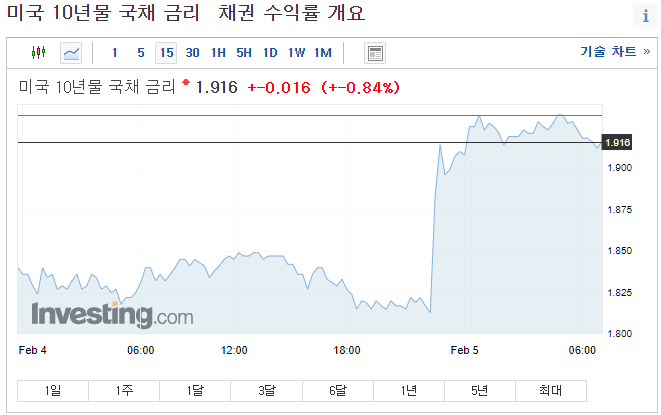 1.9를 넘어섰지요. 기술주들에게는 국채금리 영향을 많이 받기 떄문에 이제부터 단기 매매 하신분들은 조금씩 수익 실현을 추천 드립니다.