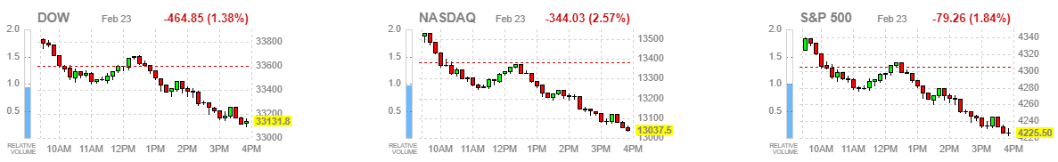 우크라이나 러시아 부대가 전면전양상을 보이고 있어서 미국증시가 하락하였습니다.