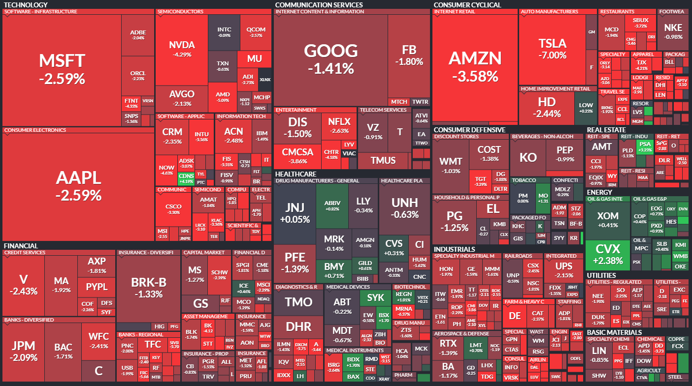 금일 섹터별 ETF로는 에너지(XLE/+1.0%)가 상승한 반면, 금융(XLF/-1.7%), 산업재(XKU/-1.8%), IT(XLK/-2.5%), 자유소비재(XLY/-3.3%) 섹터는 하락 마감. 2016년에 테슬라(TSLA/-7.0%)에 합류한 Brian Dow는 청정에너지 부문의 엔지니어링 담당 부사장 이였으나, Generac으로 이직을 한다는 소식에 하락 마감. 이어 카니발(CCL/-6.1%)이 하락하며 자유소비재(XLY) 섹터 하락 견인 마감.