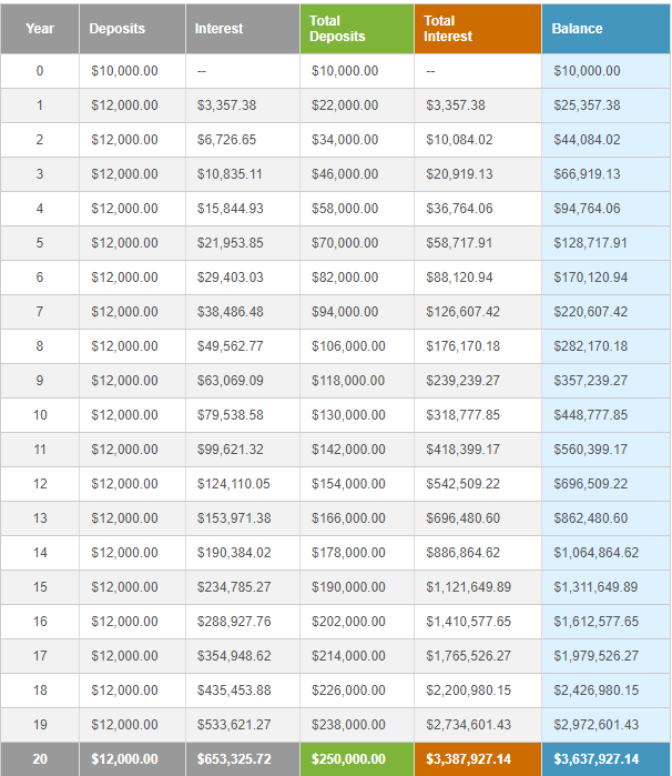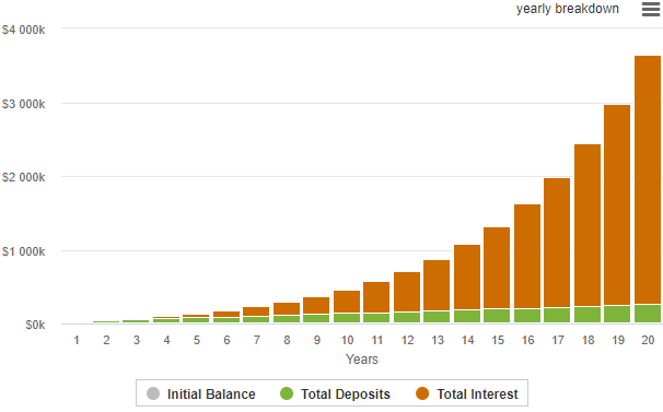 최종 년 이자만 20년째에 $653,325달러가 나온다. 이건 매년 나오는 돈이다. 실제 투자원금은 $250,000 달러 밖에 안되는데 말이다.