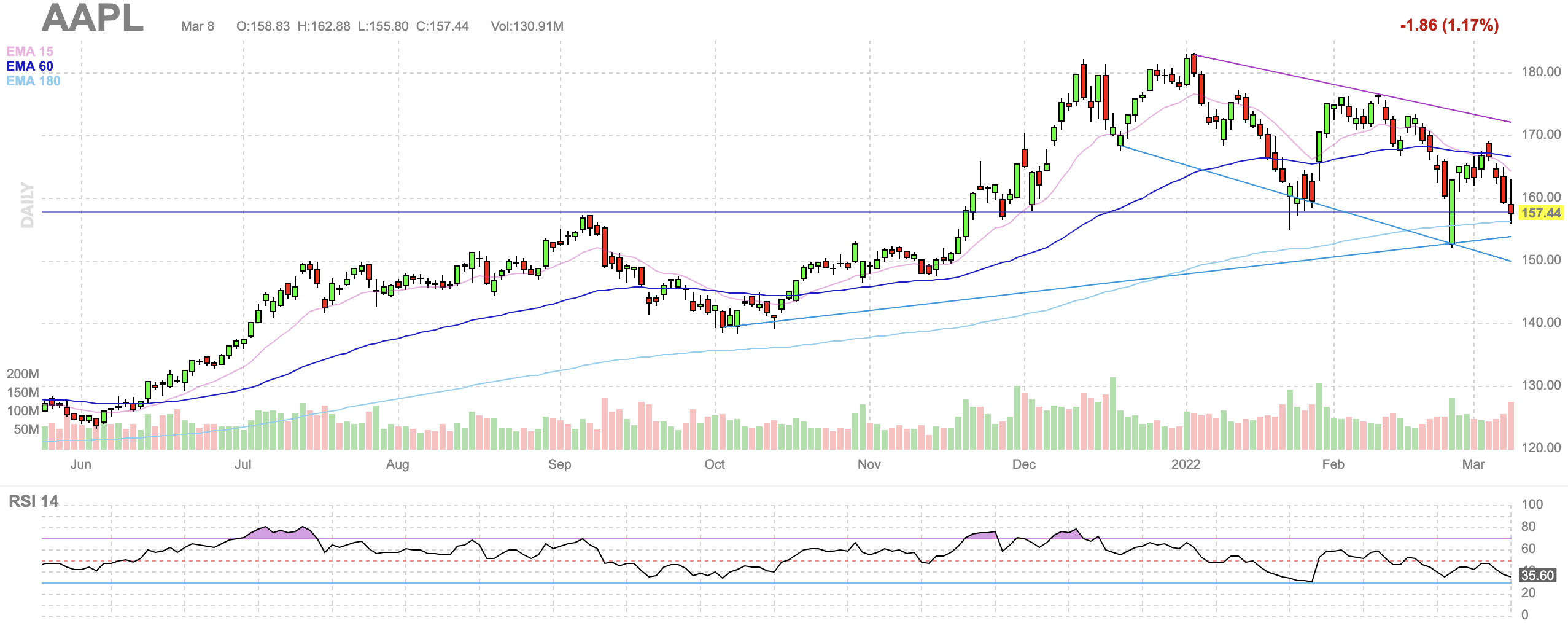 애플 156달러 선