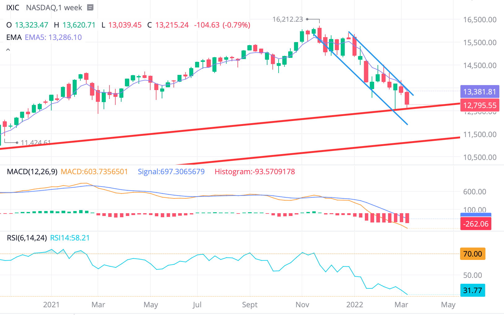 이제 전저점까지 나스닥이 하락했습니다. 이제 부터 매수가능한 시점까지 왔습니다. 다음주 금리인상이 진행되겠지만 월가에서 예상했던 정도의 0.25%만 금리인상을 진행하면 예상과 부합으로 반등할수 있으니 이제부터 분할 매수를 시작하겠습니다.