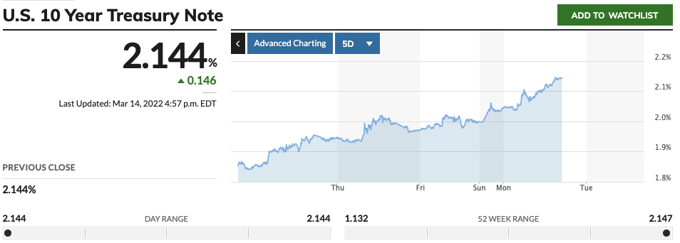 15~16일 FOMC 미팅을 앞두고 국채금리상승으로 인한 나스닥 하락입니다. 2%대를 넘었네요