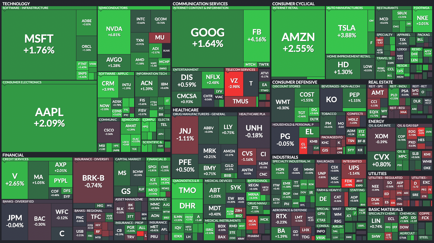 - 업종별로는 정보기술(+2.19%), 자유소비재(+2.18%)가 상승