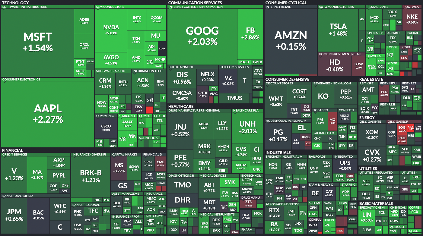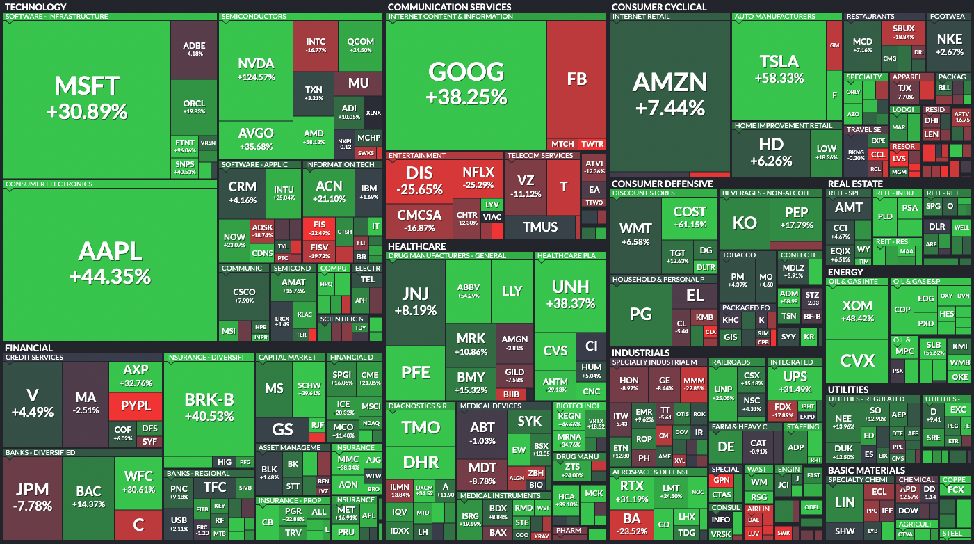 여기에서 1년 미국시총맵 차트를 올려드리면 (현재부터 1년전까지 시총변화율)