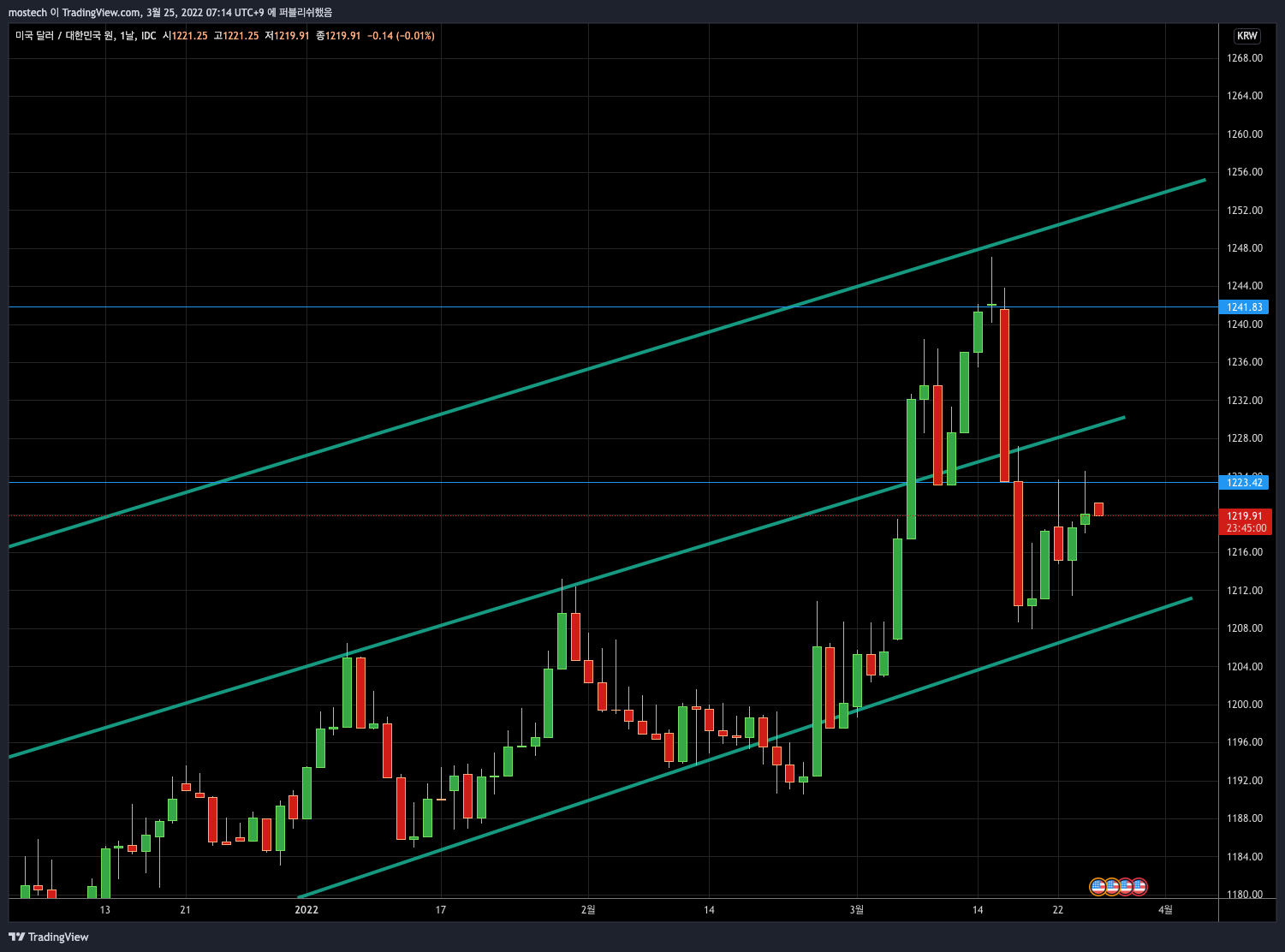 환율은 하단 선을 지키며 우상향 하고 있습니다. 과거 미국 금리 인상때도 우상향했었습니다.