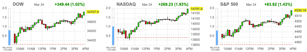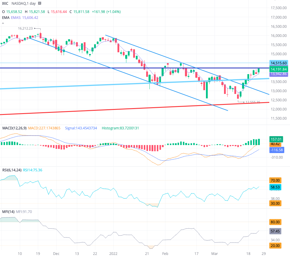 러시아 가스관 비용 비트코인결재 가능으로 발표. 현재 비트코인도 상승으로 올라가고 있습니다. 최근 파월+연준 총재들의 발언을 종합하면, 연준이 향후 미국의 경기상황에 대한 우려를 거의 하고있지 않음을 확인할 수 있어 그동안 대기자금들이 증시에 들어오고 있습니다. 사실상 2022년 연준의 출구전략 스케줄이 확정된 상황에서 큰 불확실성을 덜어낸 시장은 성장주 저가매수세가 차익실현/자산배분성 매도세를 매수세가 압도하는 분위기 지속되고 있습니다.