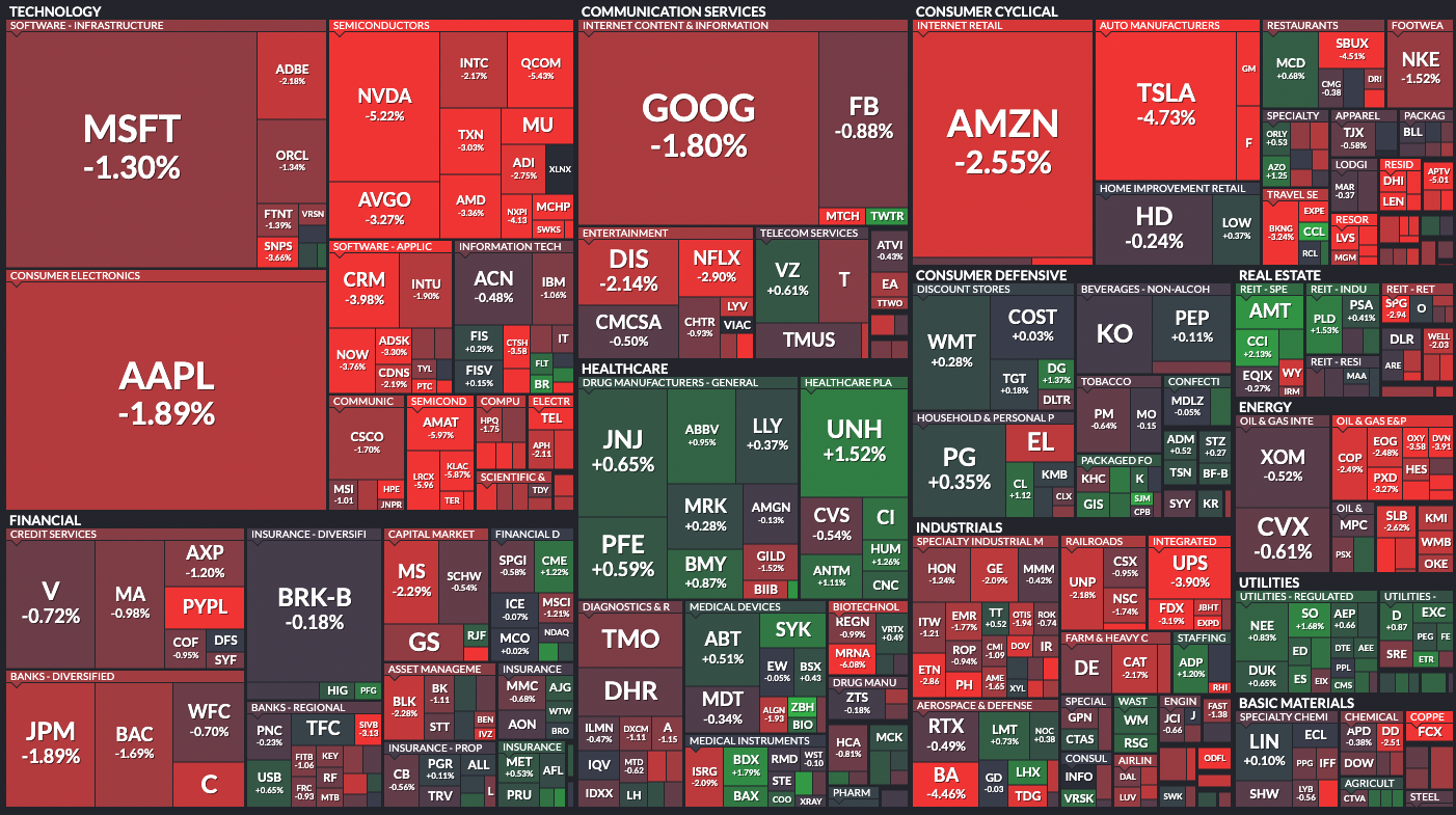 금리 인상에 더해 대차대조표 축소가 임박했다는 소식에 금리 변동에 민감한 기술 및 성장주는 하락세를 보였다.