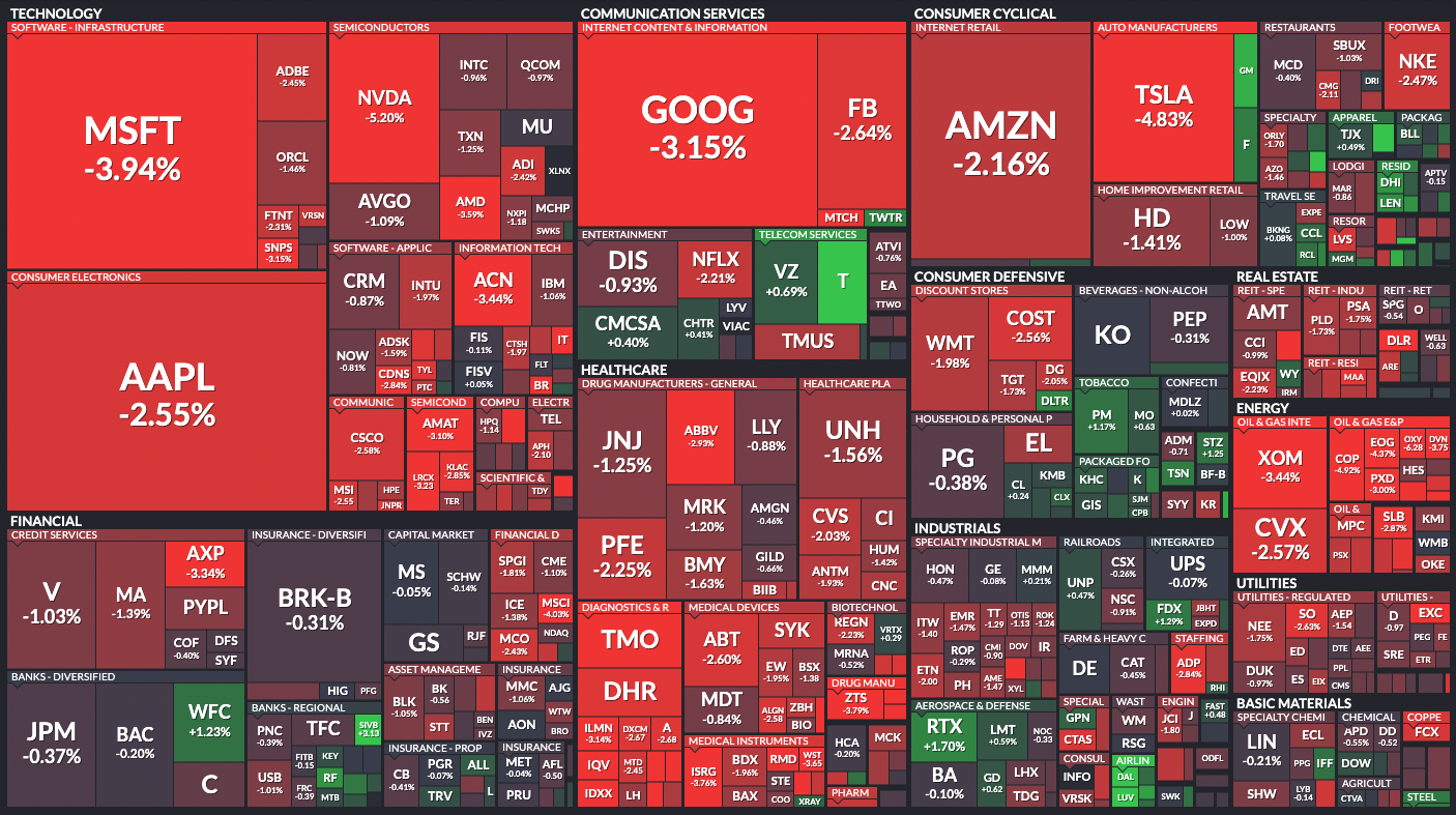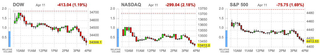 미 증시, 국채 금리 상승과 우크라이나 우려로 하락 지속