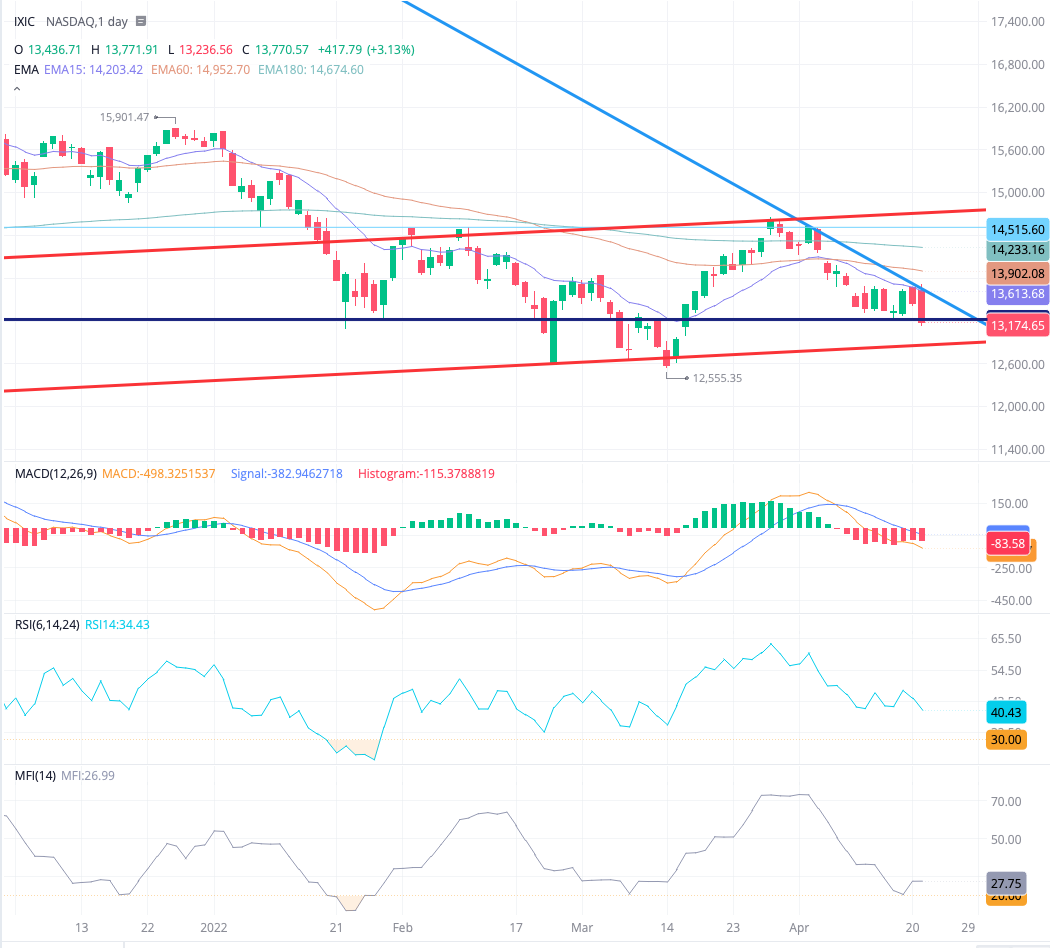 나스닥차트는 이제 그어놓은 가로줄까지 내려왔습니다. 2차매수(3차매수까지 하는겁니다) 진행하겠습니다.
