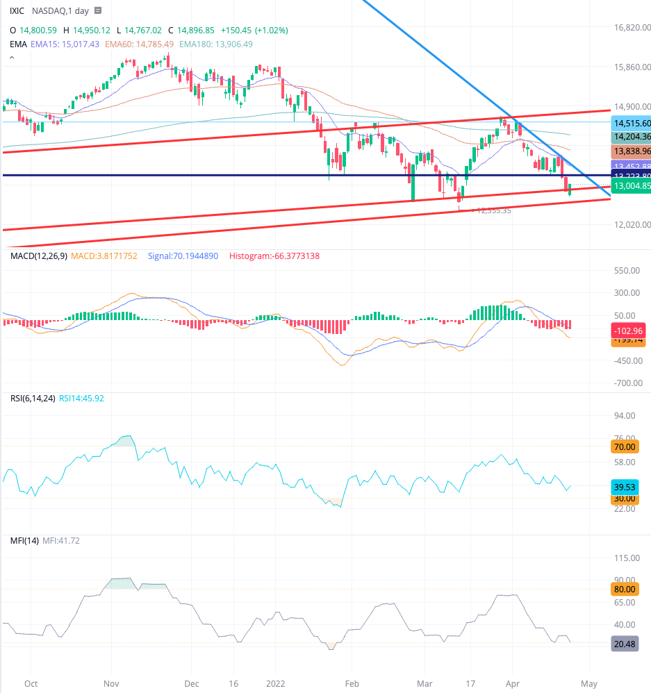 필자의 의견으로는 미국채금리 진정으로 나스닥이 올랐다? 아니라고 봅니다. 그럼 왜 반등했나? 나스닥차트를 보면 3중 바닥을 가르키고 있으니 사람들이 기다리지 못하고 마구 매수 버튼을 눌러서 오른것으로 보입니다.