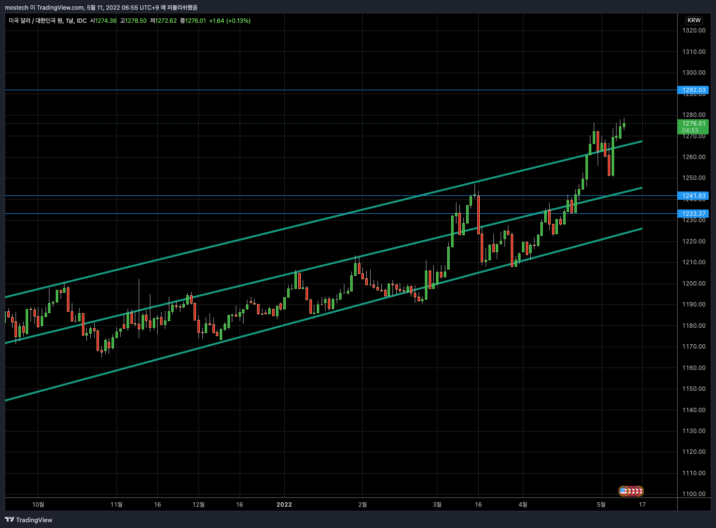 환율은 역시 최고점을 갱신하며 날뛰고 있습니다. 오늘밤 CPI 지수가 잘나오면 조금 조정이 되지 않을까 합니다.
